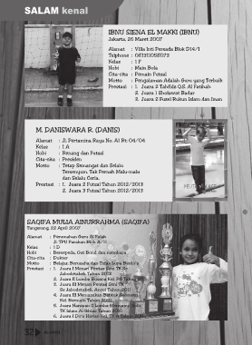 Prestasi : 1. Juara 2 Tahfidz Q.S. Al Fatihah