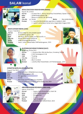 Prestasi    :  1.  Juara I Lomba Gerak dan Lagu Kelas 1, Galaksi 3, 2019