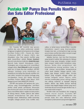 di bidang literasi. Profesi penulis dan editor j a w a b m o r a l i t u l a h , P u s t a k a M P