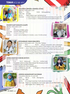 Prestasi : Juara 1 lomba hafalan do'a harian, Juara 2 lomba adzan