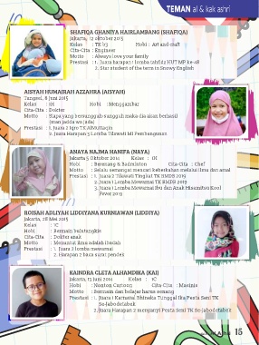 Hobi : Berenang & Badminton Cita-Cita : Chef