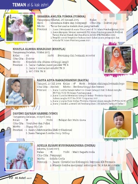 Hobi : Membaca buku dan bernyanyi Cita-Cita : Dokter gigi